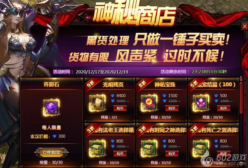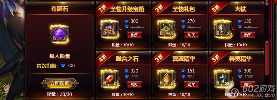 玩家也可以在神秘商店中购买许愿石许愿,许愿石许愿必得稀有品质以上宝箱。