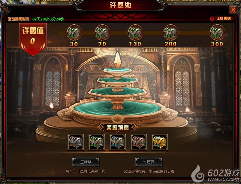 许愿池活动结束后,许愿值清零,但是未使用完三叶草和许愿石建议不要丢弃。