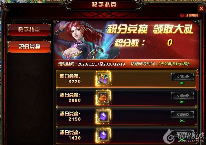 通过数字扑克获取的积分可以在积分兑换界面兑换丰厚奖励,快来参加吧!