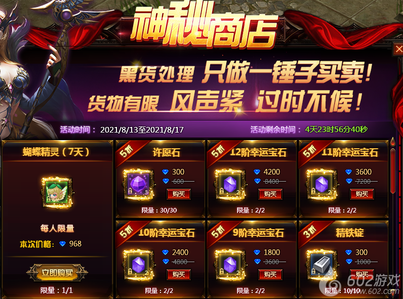 活动内容:神秘商品限时折扣,货物稀有,难得一见,快来选购吧。