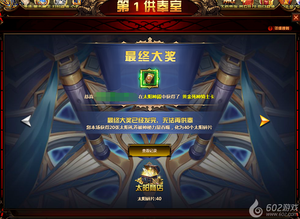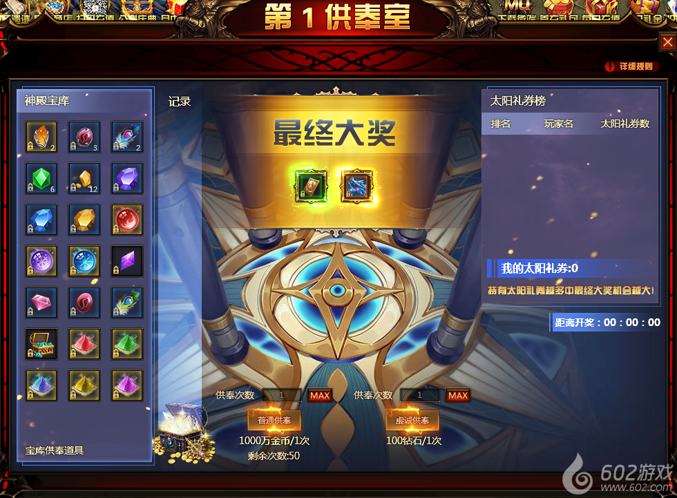 3.每日晚10点会结束供奉,并根据太阳礼券获取情况抽取最终奖励
