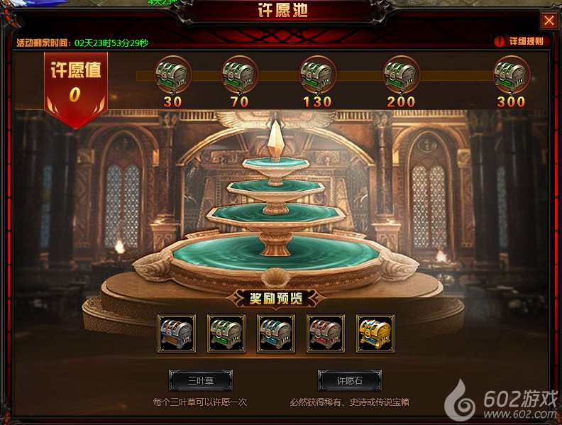 许愿池活动结束后,许愿值清零,但是未使用完三叶草和许愿石建议不要丢弃。