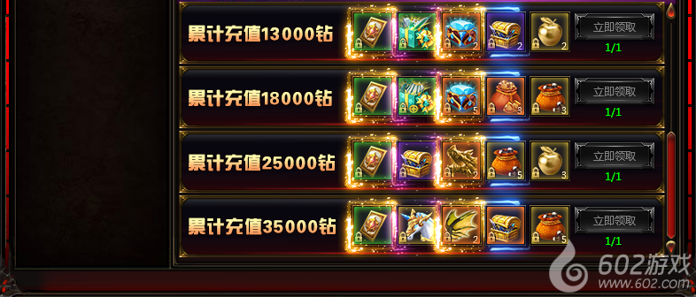 活动内容:玩家在活动时间内,累计充值达到一定钻石即可获得丰厚礼品,超值奖励等你来拿!