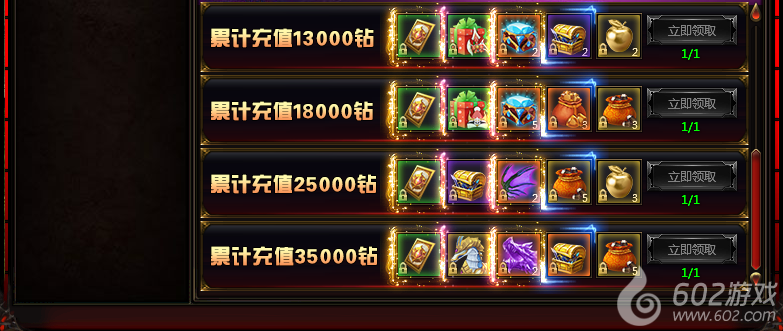 活动内容:玩家在活动时间内,累计充值达到一定钻石即可获得丰厚礼品,超值奖励等你来拿!