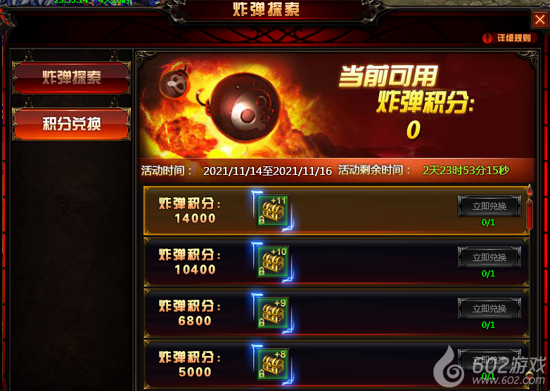 通过炸弹探索获取的积分可以在积分兑换界面兑换丰厚奖励,快来参加吧!