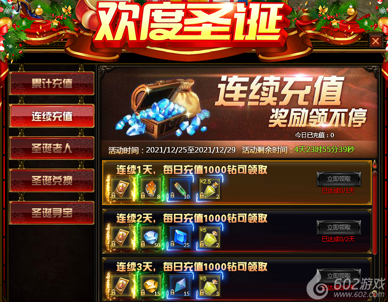 活动内容:活动时间内,玩家每日充值达到1000钻,即可获得丰厚奖励!