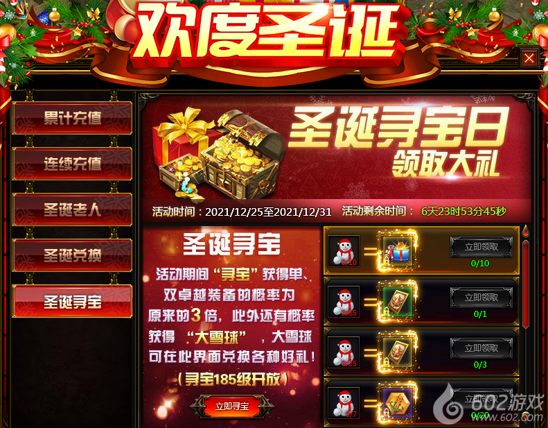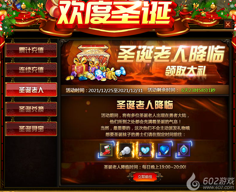 活动内容:活动时间内,每天晚上19:00~20:00勇者大陆会刷新圣诞老人,击杀圣诞老人后可获得大量稀有道具奖励。