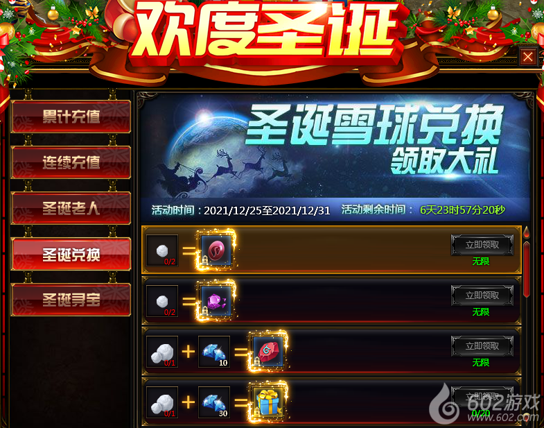 活动内容:玩家在日常挂机击杀小怪可获得小雪球,击杀野外BOSS、黄金BOSS、参与圣诞老人活动可获得中雪球,使用不同雪球及钻石比例可兑换游戏中稀有道具,详情请根据游戏中活动兑换页面为准。