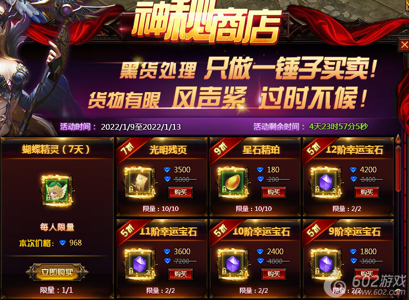 活动内容:神秘商品限时折扣,货物稀有,难得一见,快来选购吧。