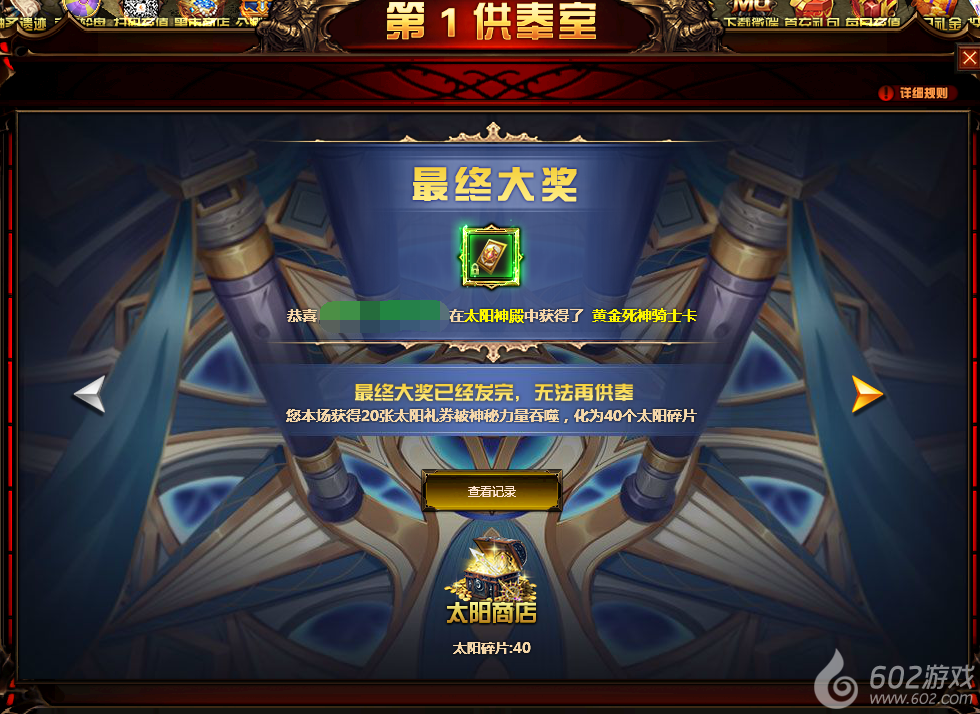 3.每日晚10点会结束供奉,并根据太阳礼券获取情况抽取最终奖励