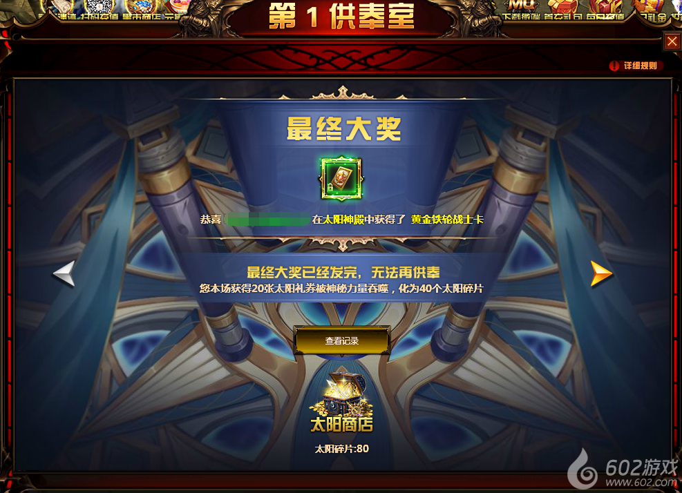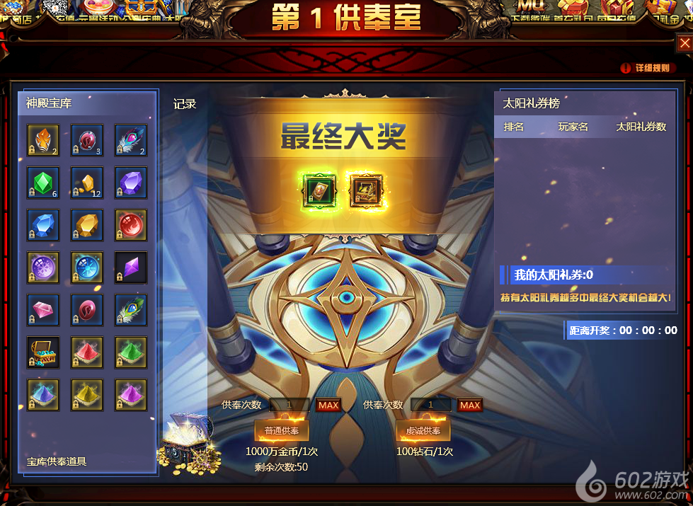 3.每日晚10点会结束供奉,并根据太阳礼券获取情况抽取最终奖励