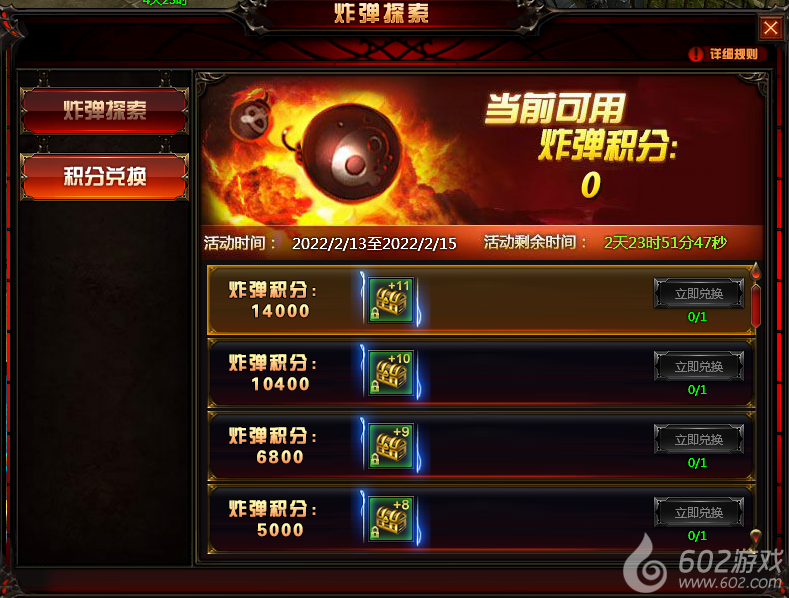 通过炸弹探索获取的积分可以在积分兑换界面兑换丰厚奖励,快来参加吧!