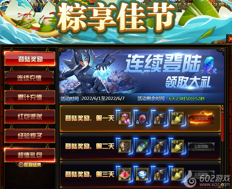 活动内容:活动时间内,玩家每天登陆游戏即可获得丰厚奖励。