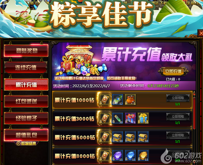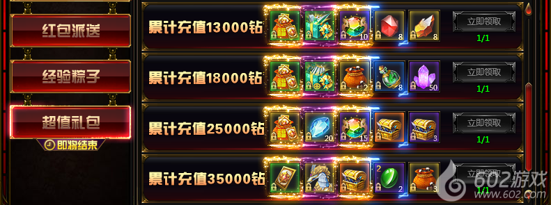 活动内容:玩家在活动时间内,累计充值达到一定钻石即可获得丰厚礼品!