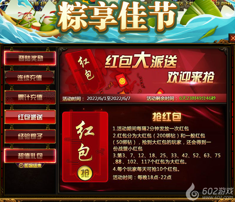 5. 赛龙舟比赛结束后,下注的龙舟如果是第一名将会获得头名活动礼盒,二三名就只有普通的二三名活动礼盒