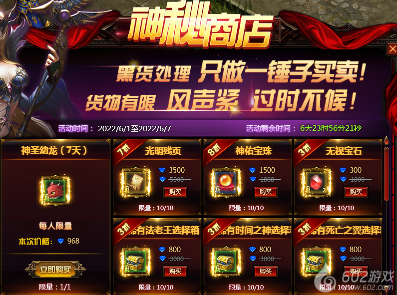 活动内容:神秘商品限时折扣,货物稀有,难得一见,快来选购吧。