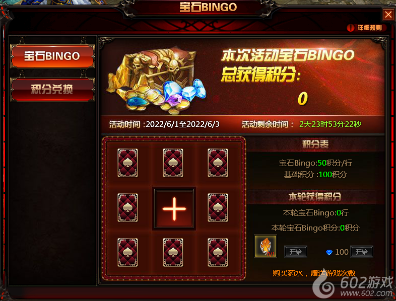 活动内容:活动时间内,玩家可以花费100钻石或1个锻造宝石购买探宝药水并获赠一次宝石BINGO游戏次数。