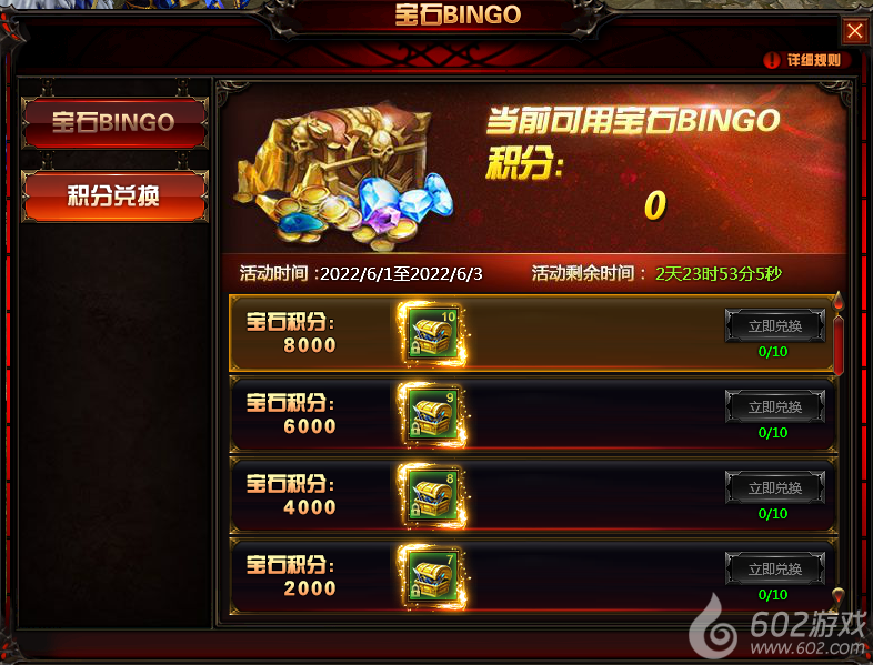 通过宝石BINGO获取的积分可以在积分兑换界面兑换丰厚奖励,快来参加吧!