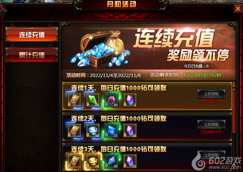 4. 每日累计充值仅当日有效,第二日会进行清空