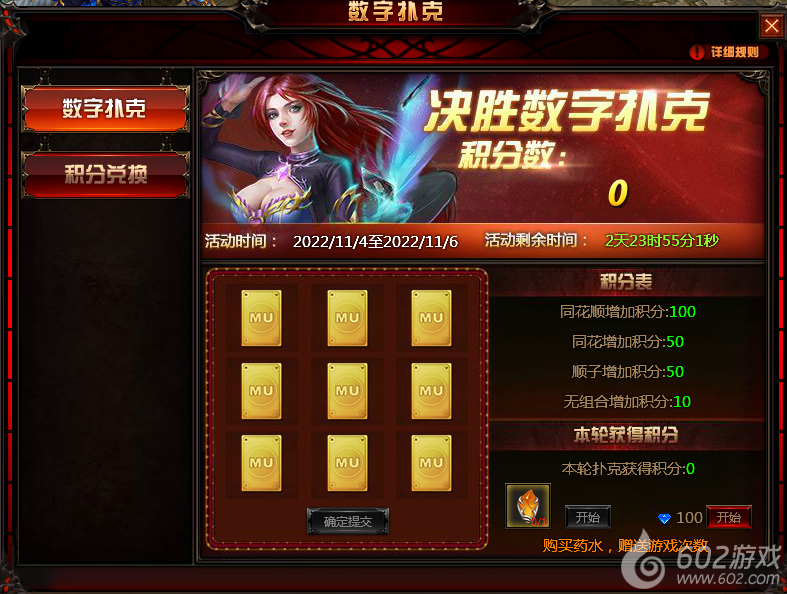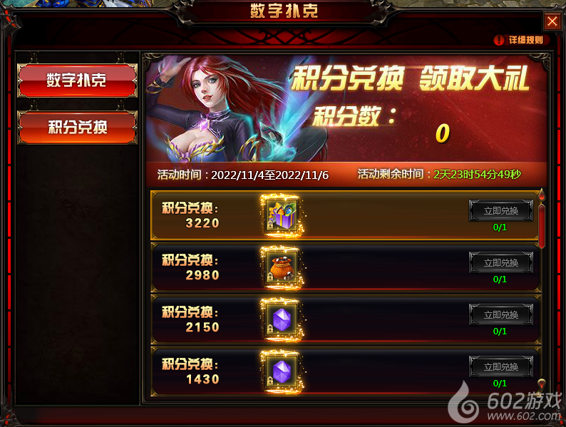 通过数字扑克获取的积分可以在积分兑换界面兑换丰厚奖励,快来参加吧!